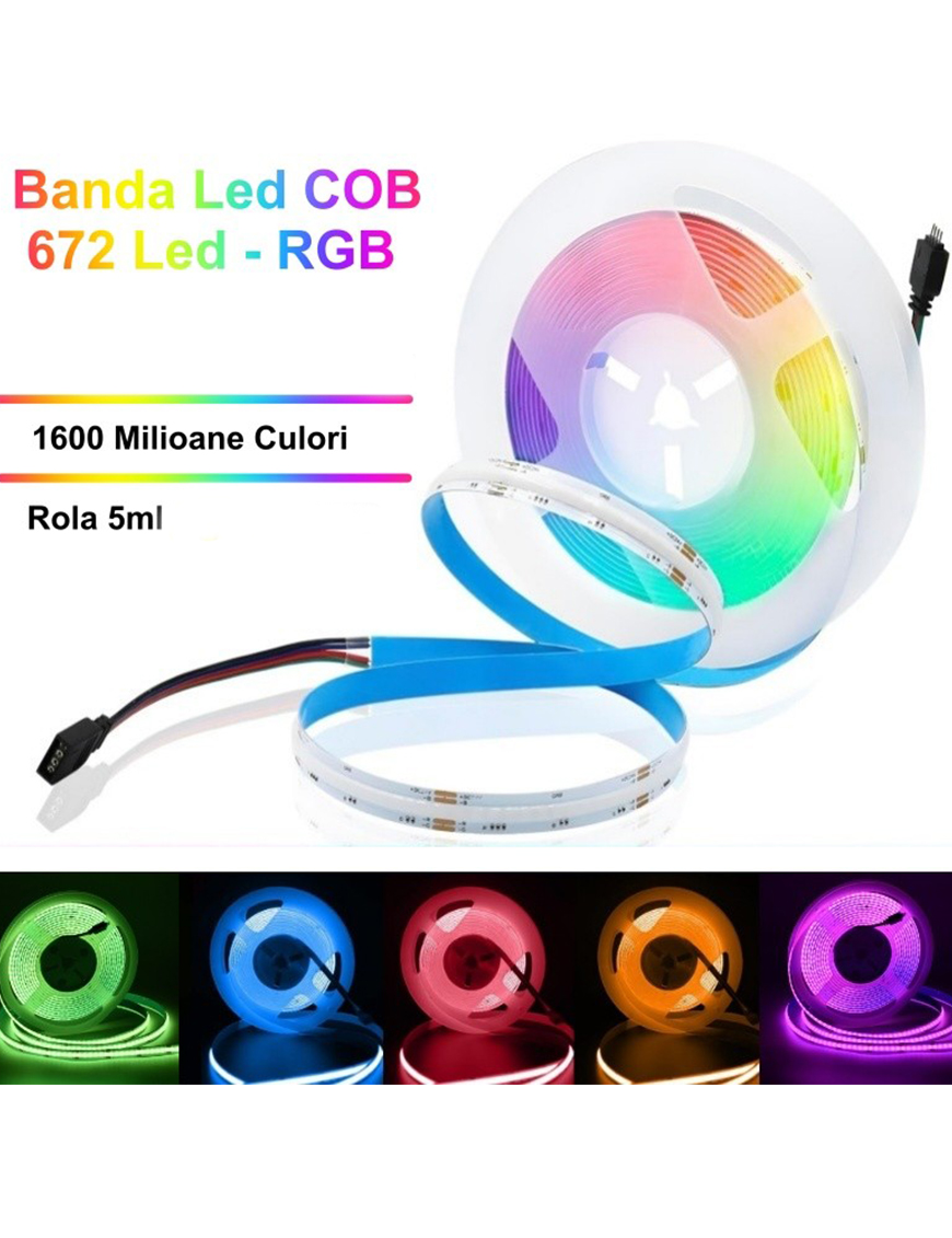 Bandă LED COB (Chip On Board) RGB cu 672 LED-uri pe metru este o soluție profesională de iluminat decorativ, proiectată pentru a oferi lumină continuă, uniformă, fără puncte vizibile, chiar și fără utilizarea unui profil LED. Datorită densității foarte mari de LED-uri și tehnologiei COB, banda asigură un aspect modern și un confort vizual superior, ideal pentru aplicații unde estetica este esențială.
